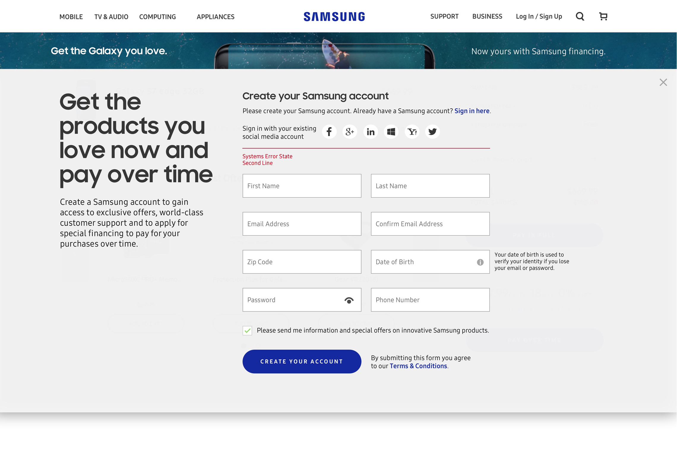 Samsungs login pages were developed with extensibility built-in utilizing design patterns that followed material design best practices.